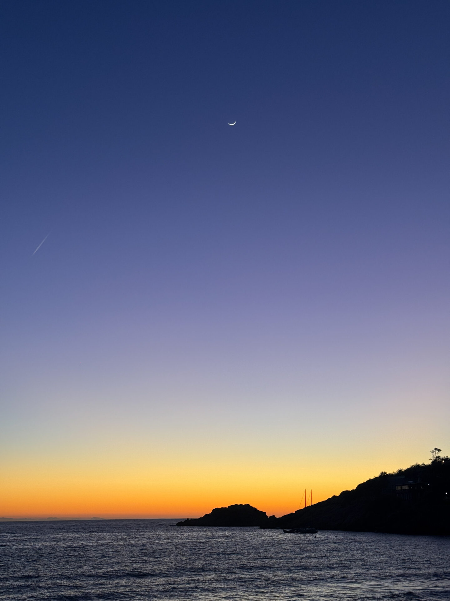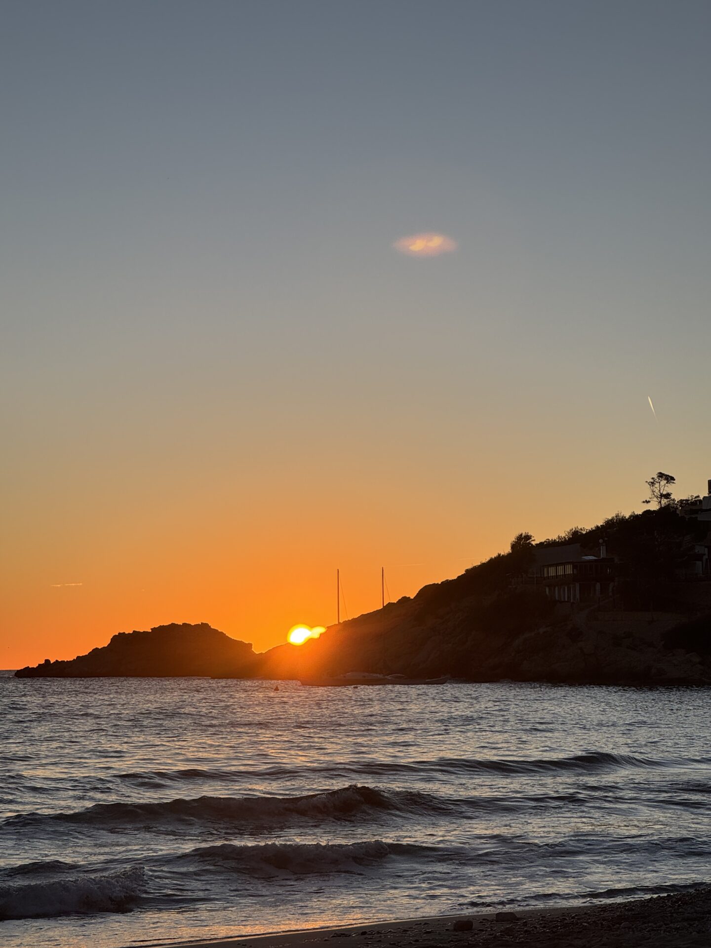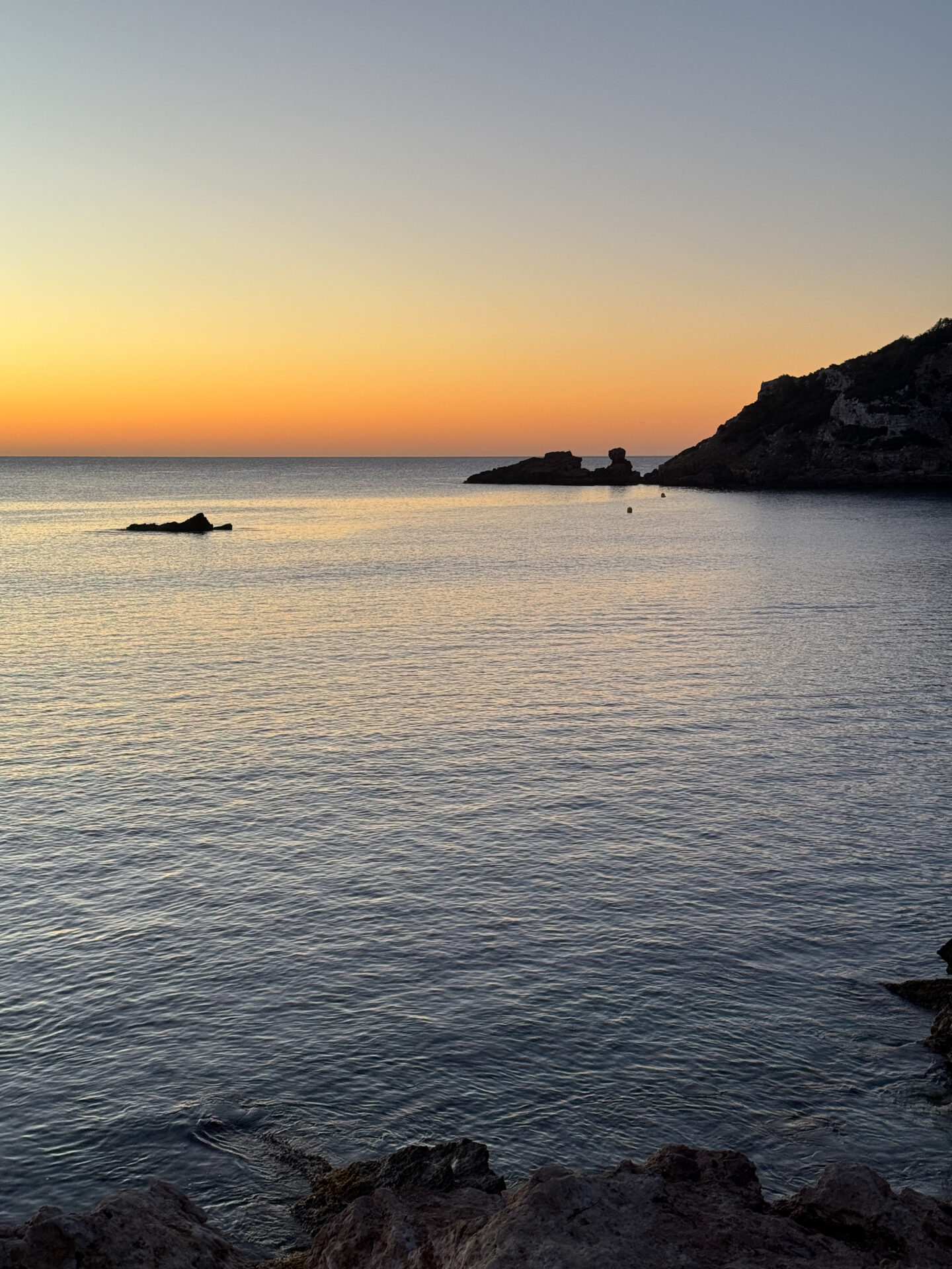 So gut wie jedes Mal, wenn ich irgendwo einen Sonnenuntergang schaue, versuche ich nicht gleich wieder loszuziehen, sobald die Sonne hinter’m Horizont verschwunden ist. Die meisten Menschen machen das so, weil ja, der „richtige“ Sonnenuntergang ist dann halt einfach vorbei. 😄 Allerdings finde ich, dass es ab da dann erst besonders wird. Der Himmel verfärbt sich meistens noch intensiver, die Sterne sind langsam zu sehen. Hier am Cala d’Hort war das echt einfach nur magisch. :’)
