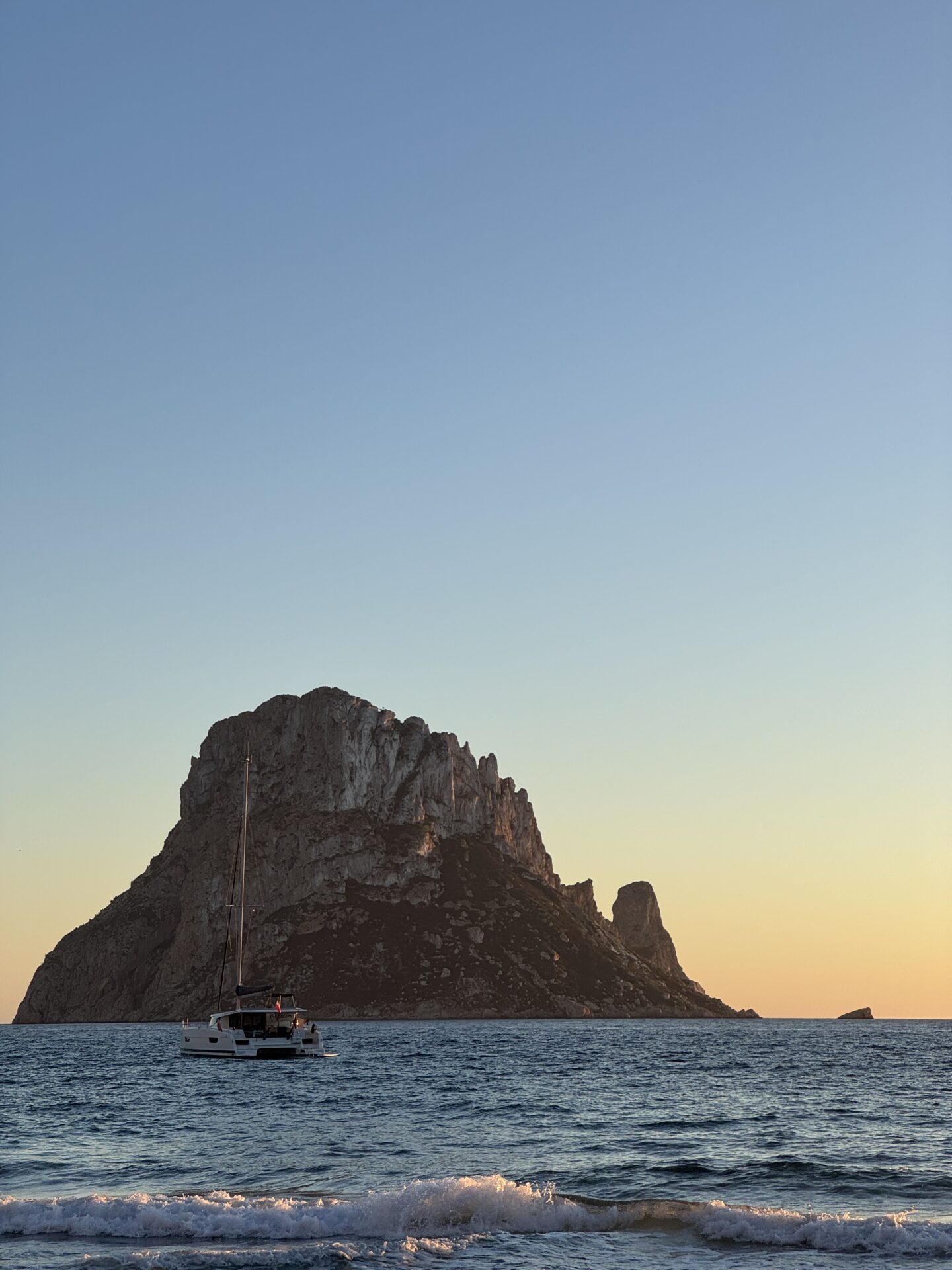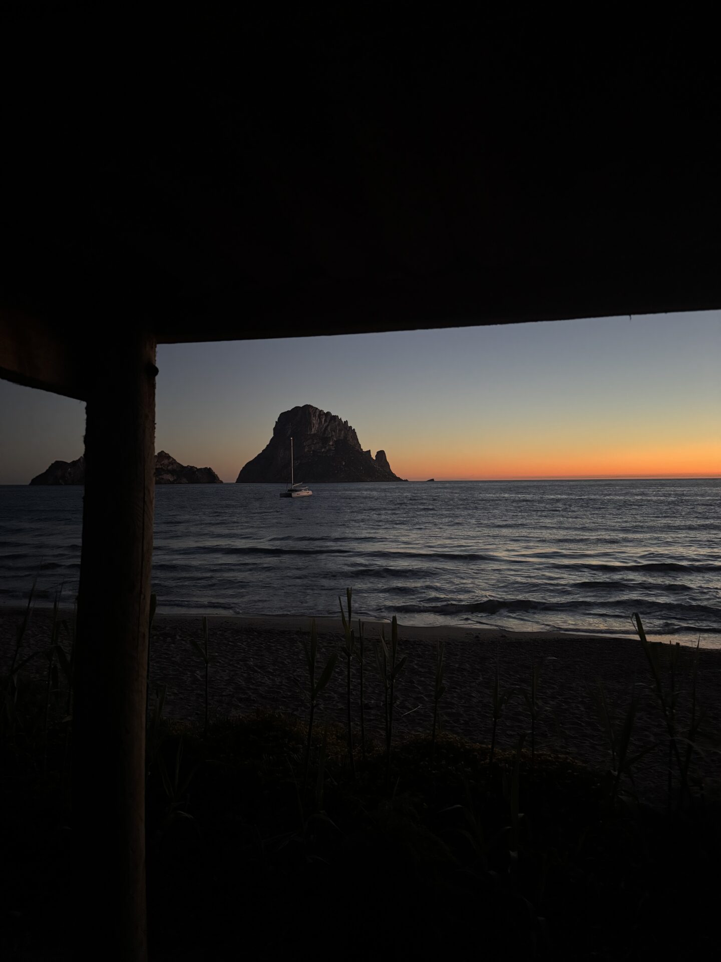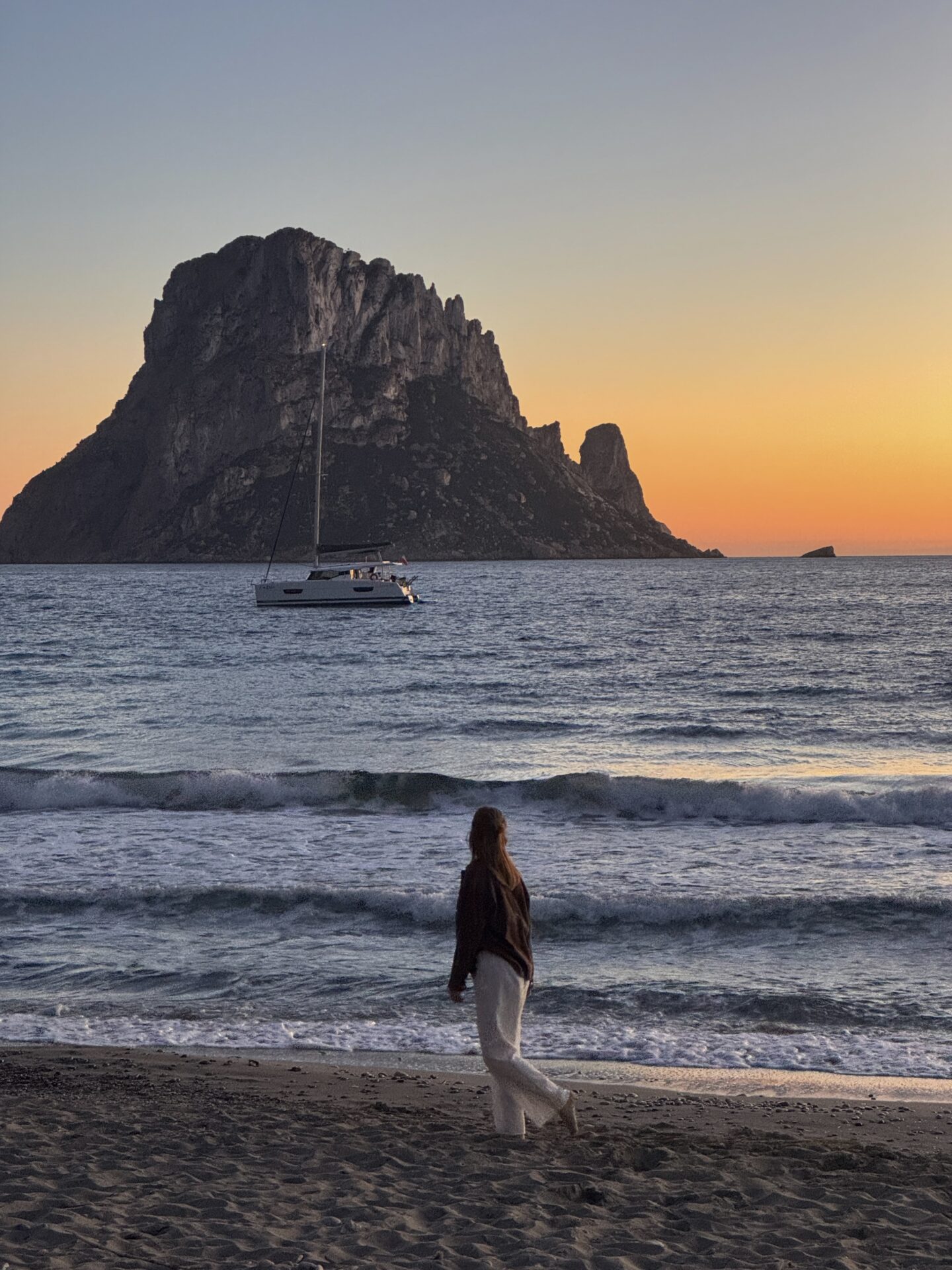 Mein absolutes Highlight dieses Ibiza-Trips: zum Sonnenuntergang am Strand Cala d’Hort – mit Blick auf den magischen Felsen von Es Vedrà! Ich hab mir ein Buch geschnappt, eine Decke und Snacks eingepackt, mich hier an den Strand gesetzt und den Tag somit perfekt ausklingen lassen. Es waren nicht viele andere Menschen hier, was die Stimmung sehr angenehm und ruhig gemacht hat.