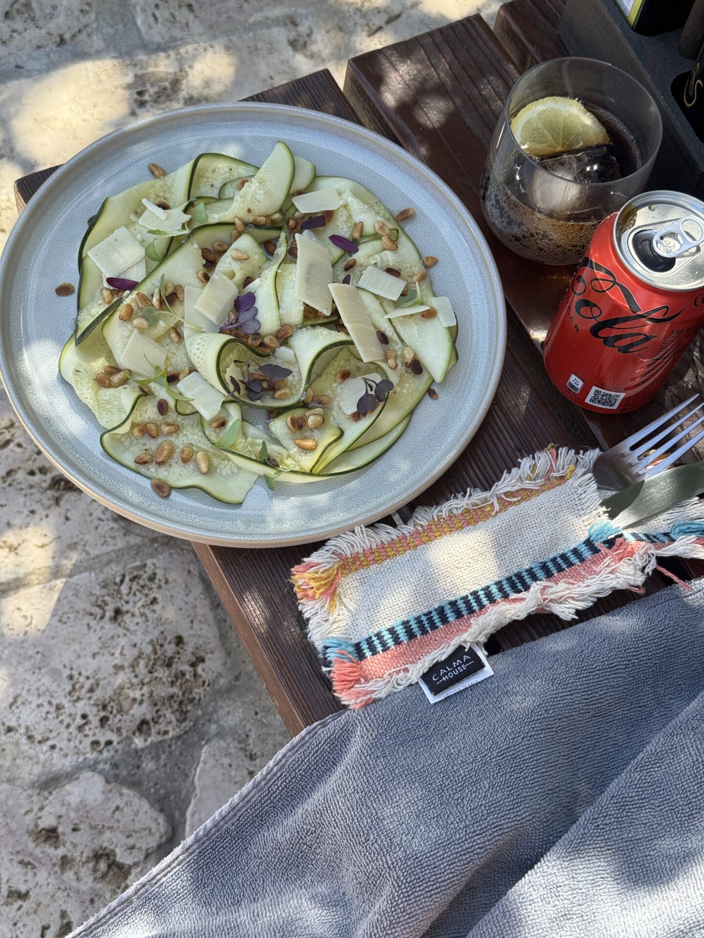 Das Hotel liegt bei San Antonio, ca. 25 Autominuten vom Flughafen Ibiza entfernt. Es ist nicht allzu groß, das macht die Atmosphäre familiärer und gemütlicher. Neben dem Pool befinden sich einige Sonnenliegen und Daybeds. Essen kann man sich vom Zeneat Restaurant bestellen. Hier wird der Fokus auf das „farm to table“ Konzept gelegt. Minimalistische Gerichte treffen auf hochwertige Zutaten, zum Brunch, Lunch oder Dinner. Ich war richtig begeistert davon! 😍
